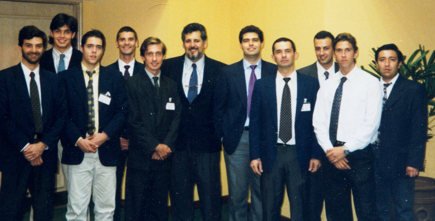 Cuarto, vemos una imagen de los integrantes de nuestra empresa y otra foto de Mario Piumetto junto a Fabio Fortuni, en el año 2000.. Diría nuestro inolvidable Alberto Olmedo: «Eramos tan jóvenes……»