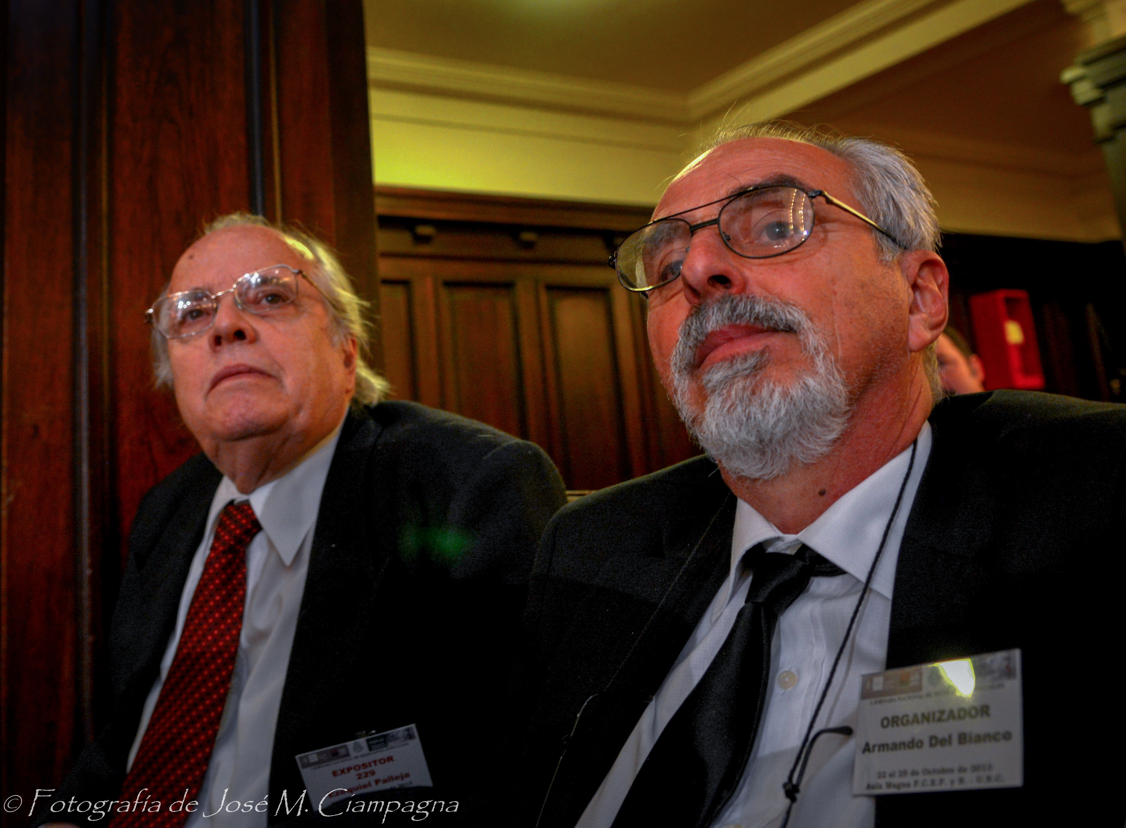 Armando Del Bianco y Ezequiel Palleja oyendo a G. S. Bartaburu